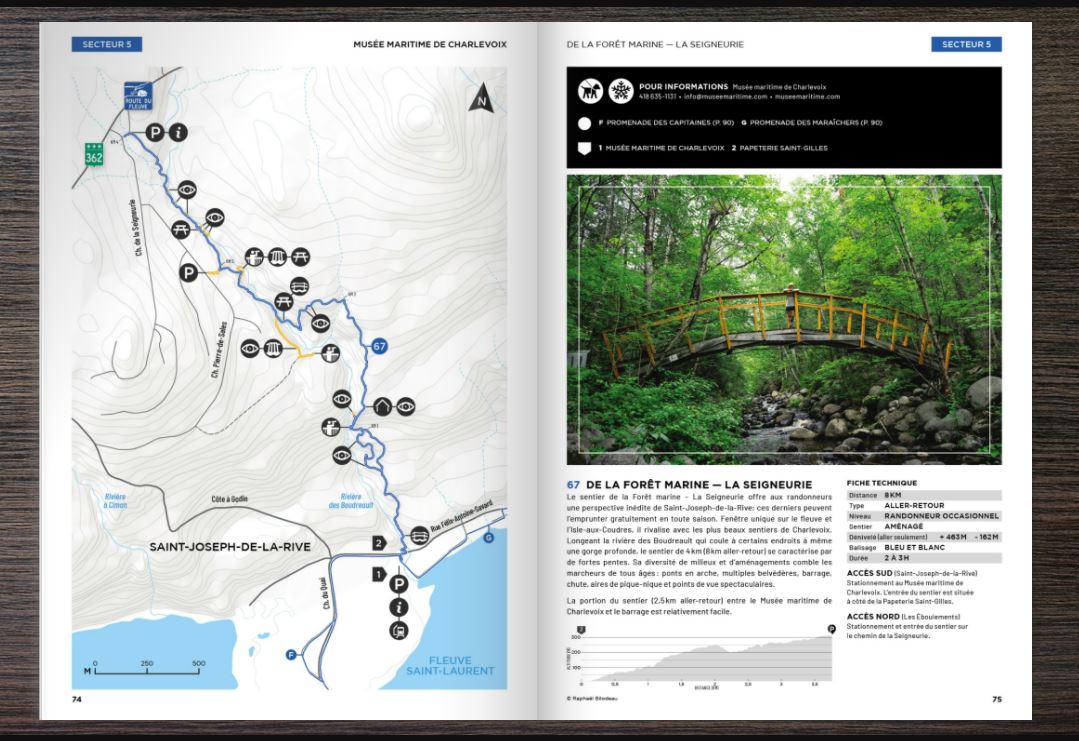 Aménagé par le Musée maritime de Charlevoix, le sentier de la Forêt marine / La Seigneurie offre une perspective inédite de Saint-Joseph-de-la-Rive aux randonneurs qui peuvent l'emprunter en toute saison. Fenêtre unique sur le fleuve et l'Isle-aux-Coudres, il rivalise avec les plus beaux sentiers de Charlevoix. En 2021, près de 20 000 randonneurs l'ont foulé !