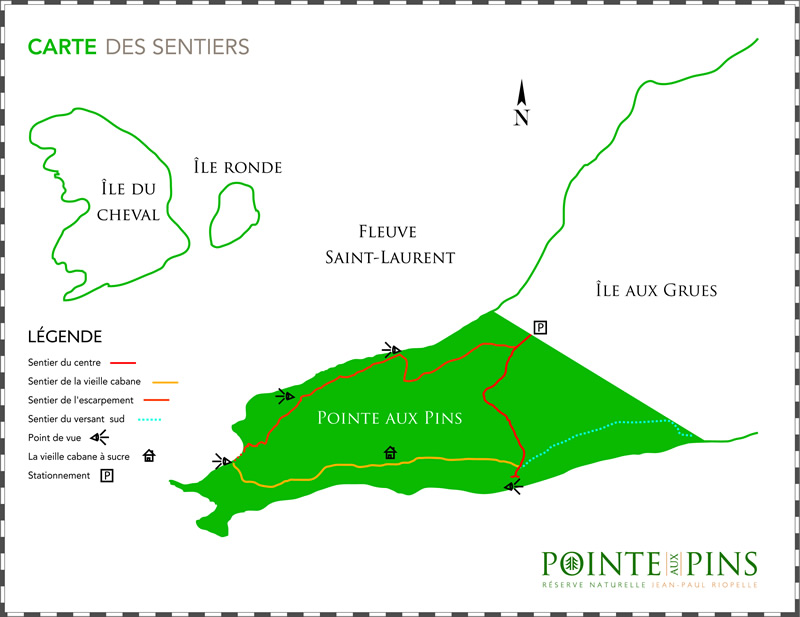 Le sentier serpente le territoire au pied d'érables à sucre de 300 ans, de noyers cendrés et d'espèces présentes que dans de rares milieux humides boisés des îles du fleuve Saint-Laurent. Située sur le couloir migratoire de l'Est de l'Amérique du Nord, cette forêt constitue l'habitat d'une grande variété d'oiseaux.