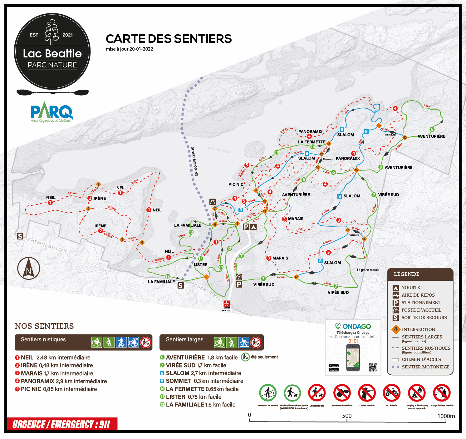 Une dernière étape avant de vous rendre sur les sentiers : il est important de communiquer votre sortie à quelqu’un de confiance et au gestionnaire de sentier. De cette manière, si un incident survient, vous saurez que quelqu’un sait où vous êtes.