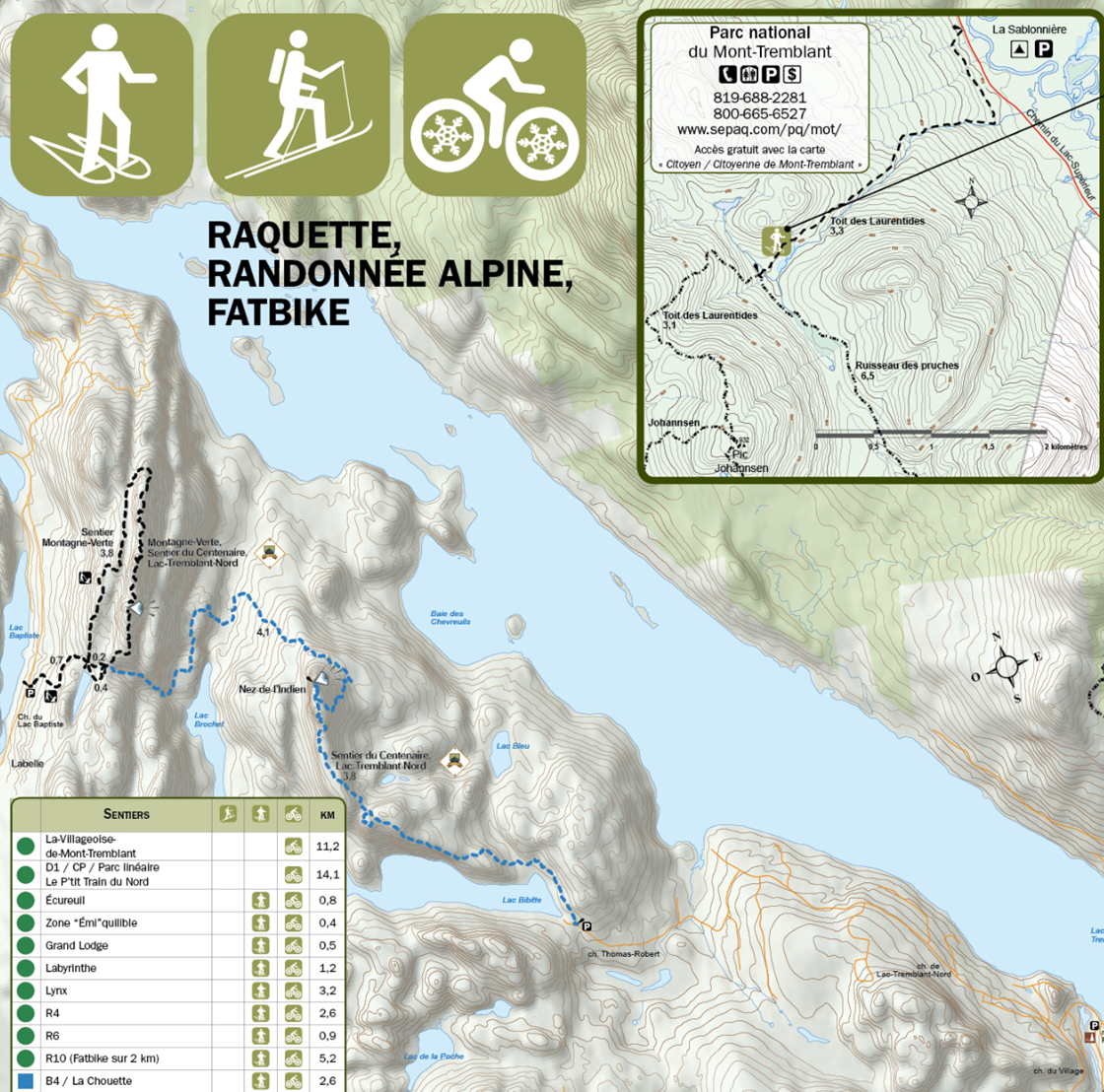 Chemin du Lac Baptiste : Il est également possible de rejoindre le Sentier du Nez de l'Indien en partant par le Sentier de la Montagne Verte (toilette sur place).