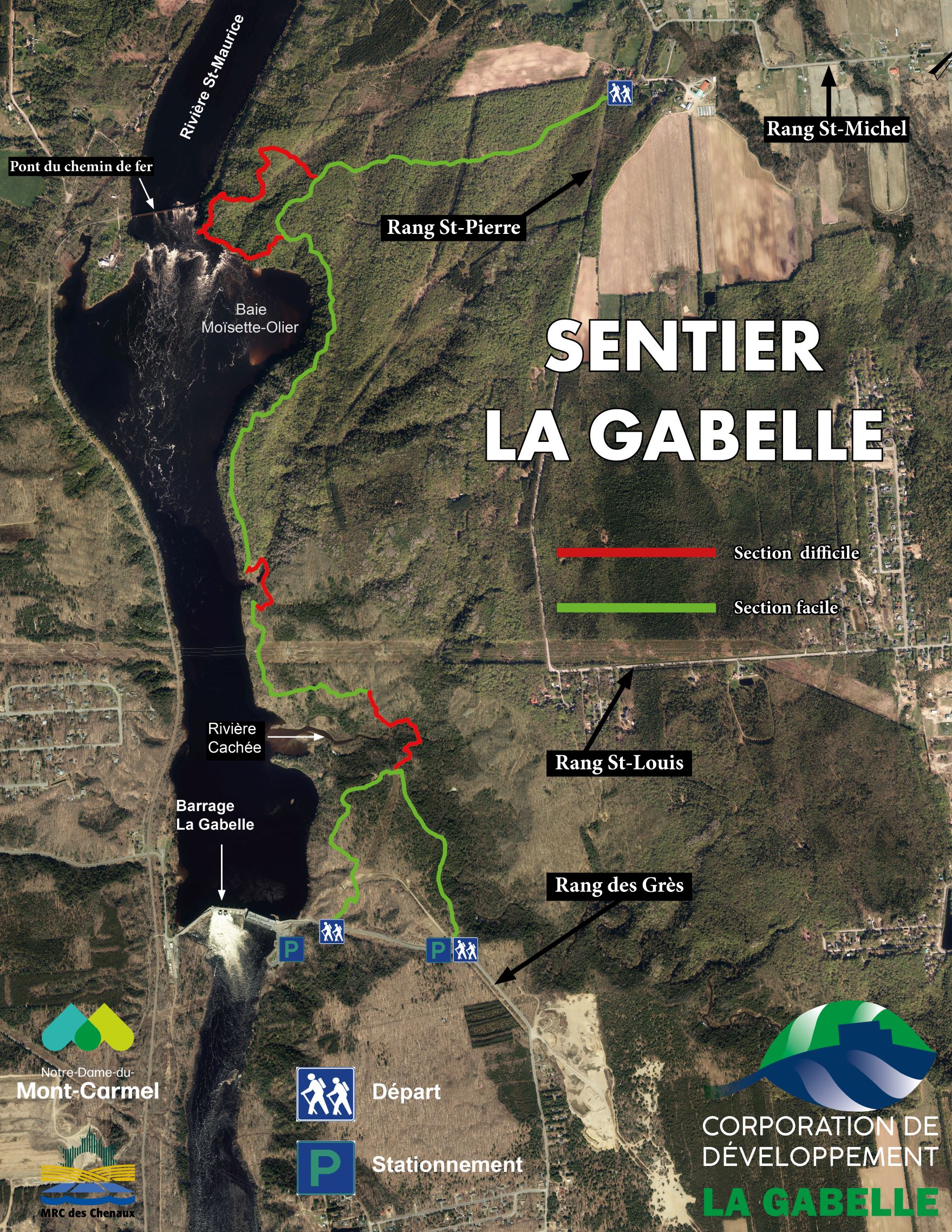 Deux départs partent du Parc nature La Gabelle et un du rang St-Pierre, au limite de Notre-Dame-du-Mont-Carmel et de Shawinigan-Sud.