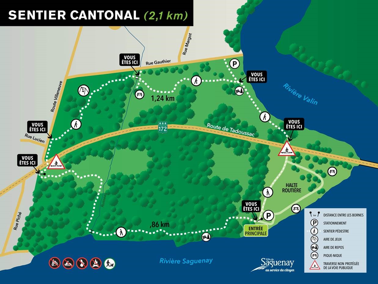 2,5 kilomètres de sentier accessible gratuitement à partir de la halte routière de la route de Tadoussac.