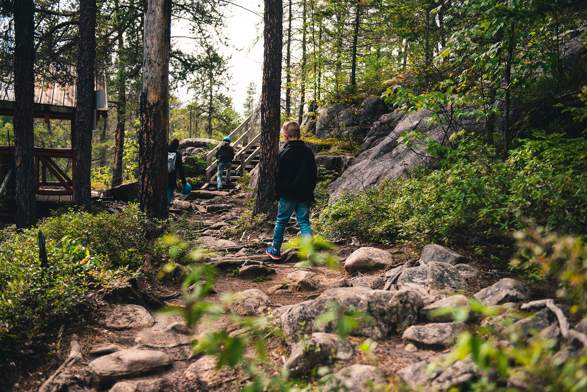 Contemplez sur 4.5 km de sentiers de randonnées la tumultueuse rivière Métabetchouane avec ses chutes, ses cascades et la diversité de son couvert forestier. Explorez son canyon et profitez de la promenade de la conduite d'amenée d'eau, un rappel historique de son patrimoine industriel qui mène aux vestiges d'une centrale hydroélectrique. Marchez au-dessus de l'eau, sur des passerelles ancrées aux caps de roc et des ponts suspendus allant de 8 mètre à 60 mètres de hauteur. Un sentier se rend à la caverne, un phénomène unique au Canada de par sa formation dans un granit vieux de plus d'un milliard d'années. Elle est l'endroit idéal pour vivre une première expérience de spéléologie.