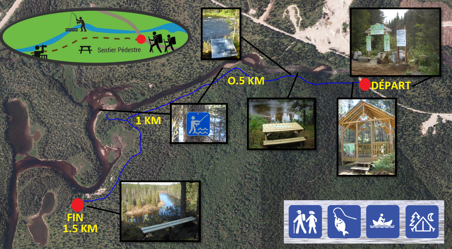 Ce sentier, jalonné de sites de pêche, de panneaux d'interprétation et d'aires de repos, longe la magnifique rivière Alex sur 1,5 kilomètre . Sentier gravelé sur 1 kilomètre. Facile d'accès.