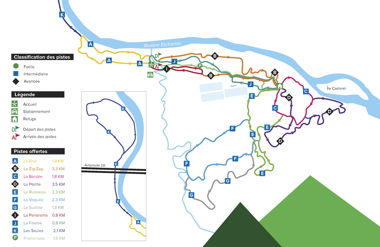 Sentiers de marche, de raquettes, de ski de fond et de vélo (FatBike) l'hiver et de vélo l'été. Secteur St-Jean-Chrysostome et St-Romuald.
