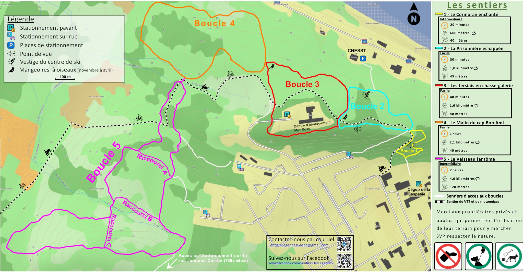 Chaque boucle porte le nom d'une légende gaspésienne tirée des ouvrages de l'ethnologue Jean-Claude Dupont. En chemin, des panneaux vous racontent ces histoires inspirées du folklore local, ajoutant une touche de mystère et de culture à votre randonnée.