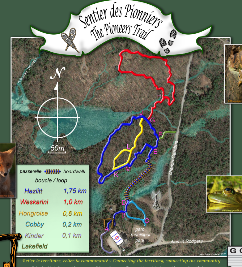 Le Sentier des Pionniers est ouvert depuis bientôt six ans. Bien qu'il soit encore en développement, son attrait en fait un lieu privilégié pour la randonnée et la raquette.