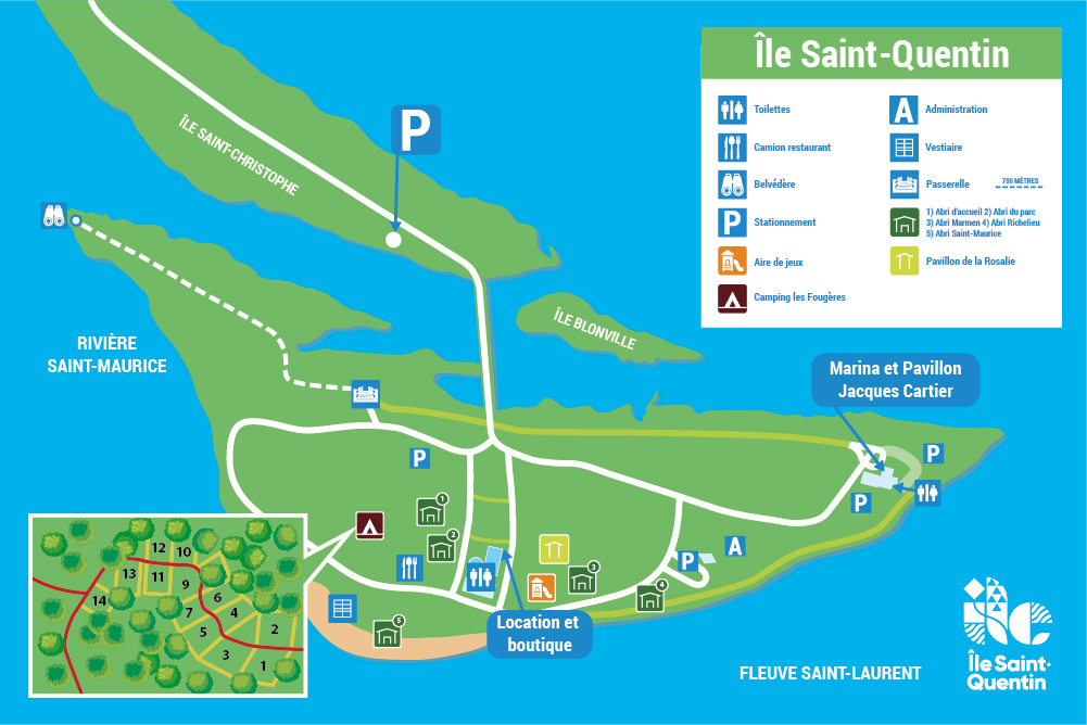Cette île étant située au confluent de la rivière Saint-Maurice et du fleuve Saint-Laurent, vous pourrez observer entre les glaces le phénomène de l'eau ayant deux couleurs différentes. Les zones boisées sont composées en partie de bouleau gris, de noyer cendré, d'aubépine, de tilleul d'Amérique et de cenellier, une essence très rare. Le sentier de marche longe en grande partie le fleuve. Vous pourrez, en chemin, emprunter le sentier panoramique et la passerelle donnant accès à un belvédère offrant une vue sur les îles avoisinantes. Des panneaux d'interprétation sont disposés le long de la passerelle d'une longueur de 750 m.