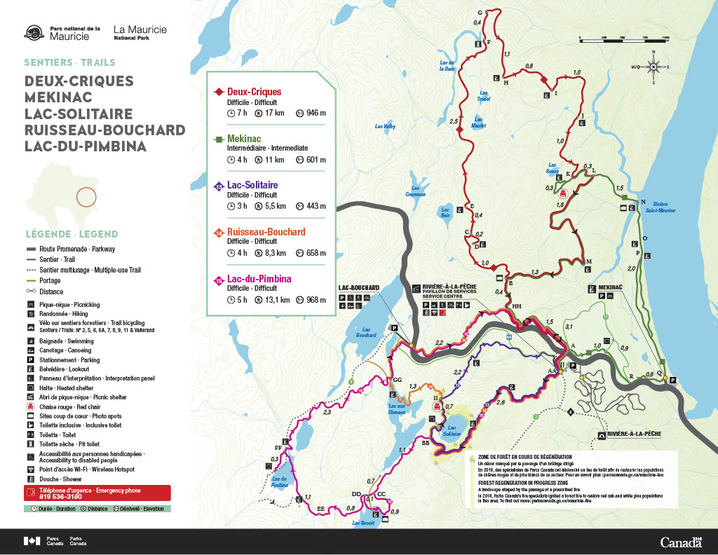 Entrée Saint-Jean-des-Piles: autoroute 55, sortie 226, suivre les indications pour le parc national de la Mauricie